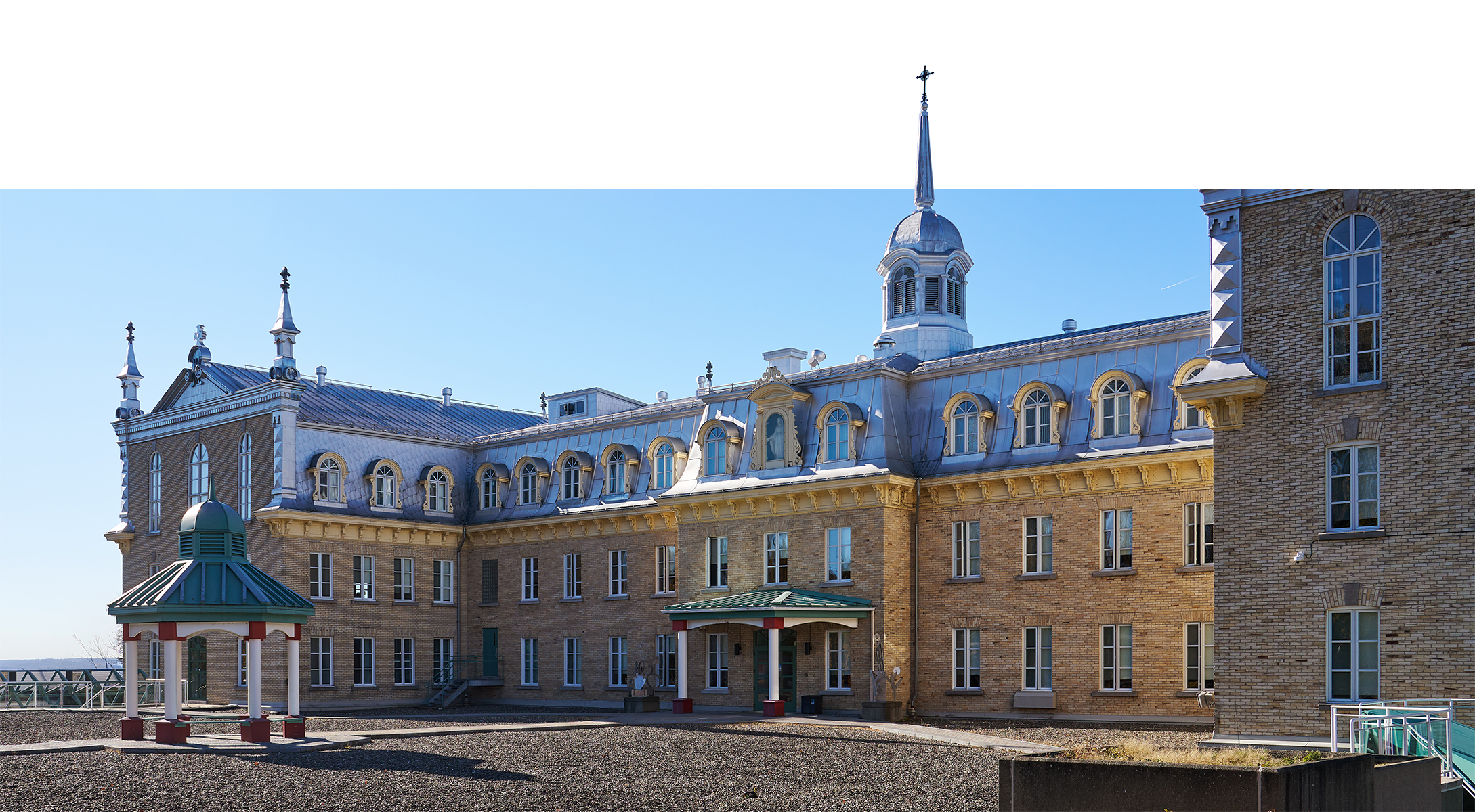 Située dans le Vieux-Lévis sur un site enchanteur avec une vue imprenable sur le fleuve Saint-Laurent et le Château Frontenac, notre institution d’enseignement secondaire doit son existence à Mgr Joseph-David Déziel, curé de Lévis. Soucieux de donner aux jeunes filles de sa paroisse une éducation solide et conforme à leur condition, il décide de confier cette œuvre aux Sœurs de la Charité de Québec et à sa fondatrice, Mère Marcelle Mallet. Le 22 septembre 1858, Mère Mallet traversait le fleuve avec cinq de ses compagnes pour prendre possession de ce bâtiment nouvellement construit, au coût de l’époque de 14 412 $. Dès le 1er octobre, les premières élèves faisaient leur entrée.